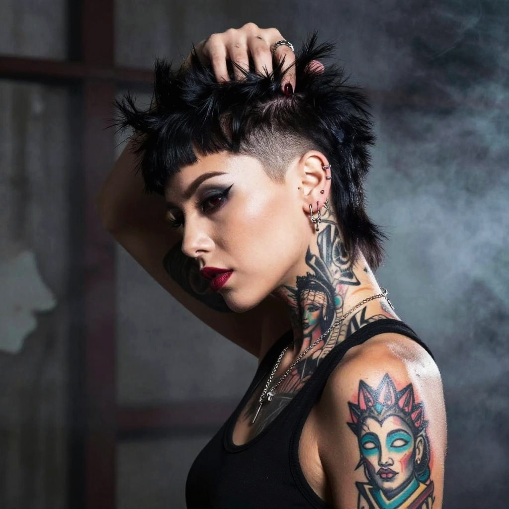 Punk Bob Haircut with Tattoos