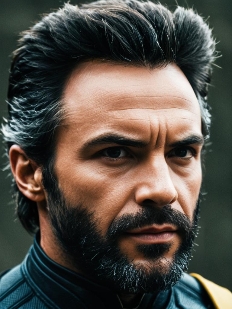 Man in Wolverine Costume, close-up detailed headshot with sideburns