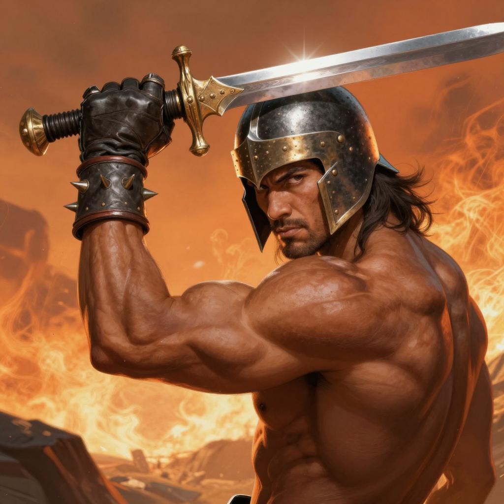 Bearded Man with Pistol and Ornate Woman in Digital Illustration