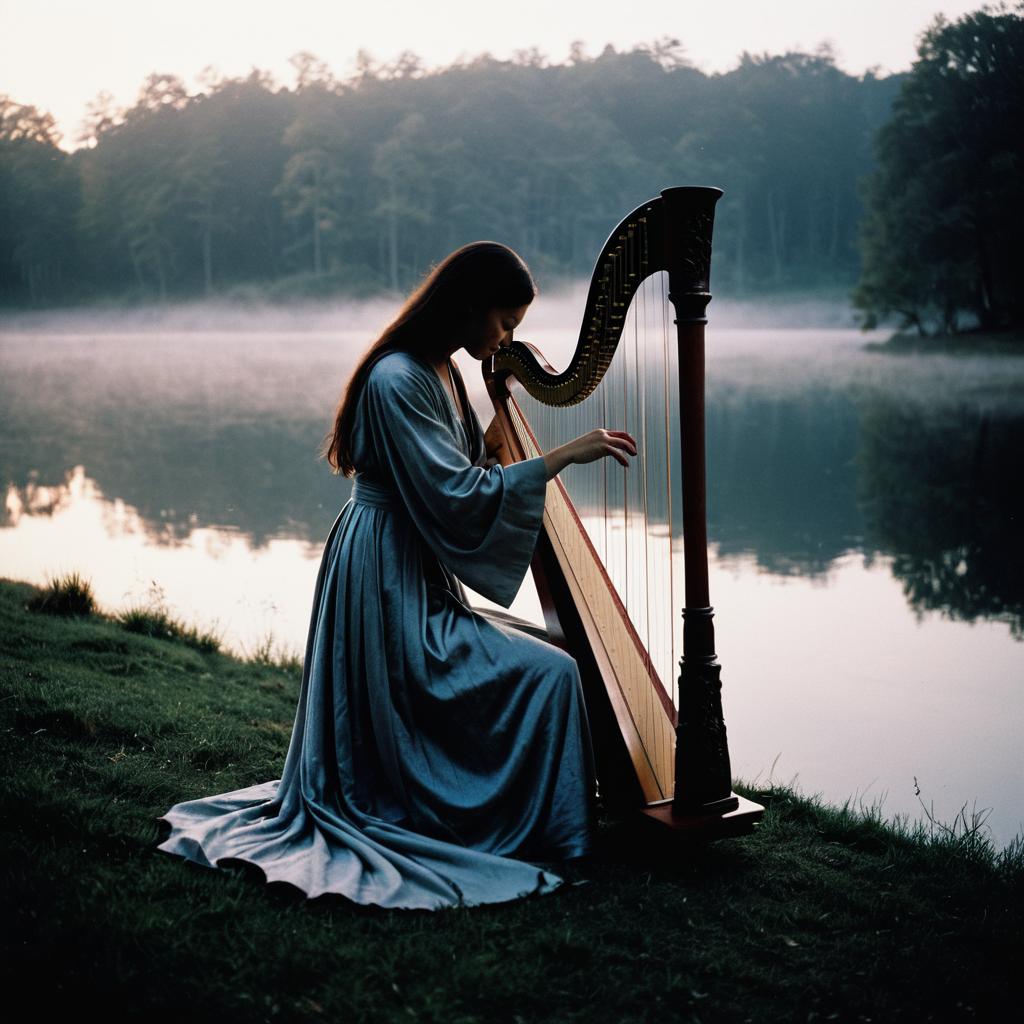 Chiaroscuro art photo taken with Fujifilm Velvia 50 analog film of a painter focused on a canvas, wearing a paint-splattered apron, in a cozy studio filled with natural light, rich contrasts and glowing colors, emotional and atmospheric feel.