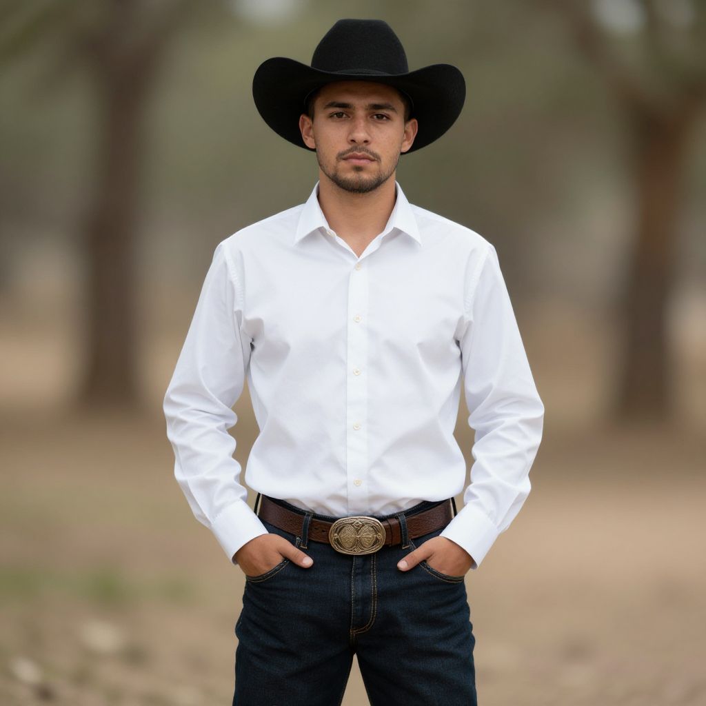 "colonial costume male, 1boy, male focus, solo, hands in pockets, hat, outdoors, shirt, blurry background, belt, looking at viewer, blurry, pants, cowboy shot, standing, white shirt, facial hair, jacket, day Realistic photo of casual sexy person with pretty face"
