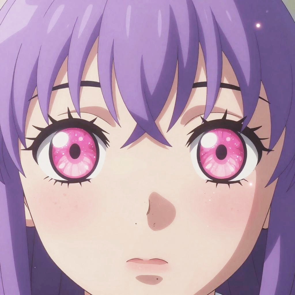 Pretty anime eyes portrayed in a close-up shot, glistening with vibrant shades of pink and lavender, framed by thick, fluttering lashes, surrounded by delicate freckles and faint blush, set in a fantasy landscape with floating lights, emphasizing whimsical beauty.