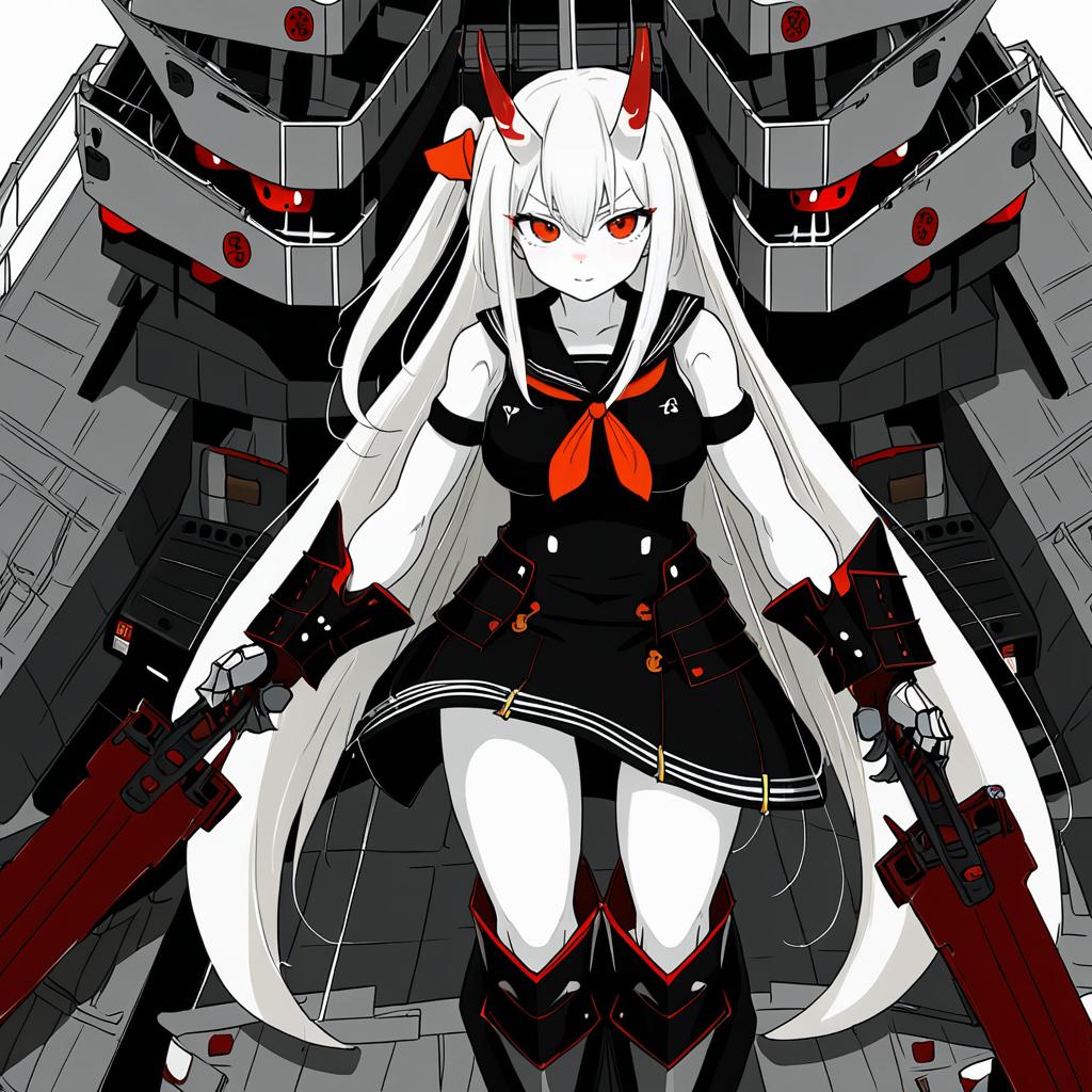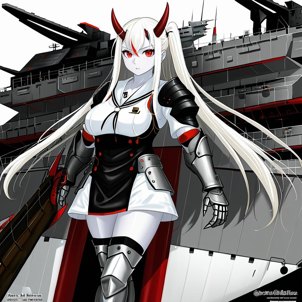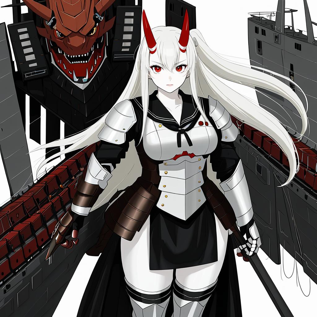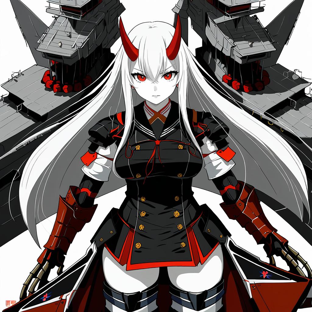 Illustration of Aircraft carrier water oni, kantai collection in the style of Yamakawa
