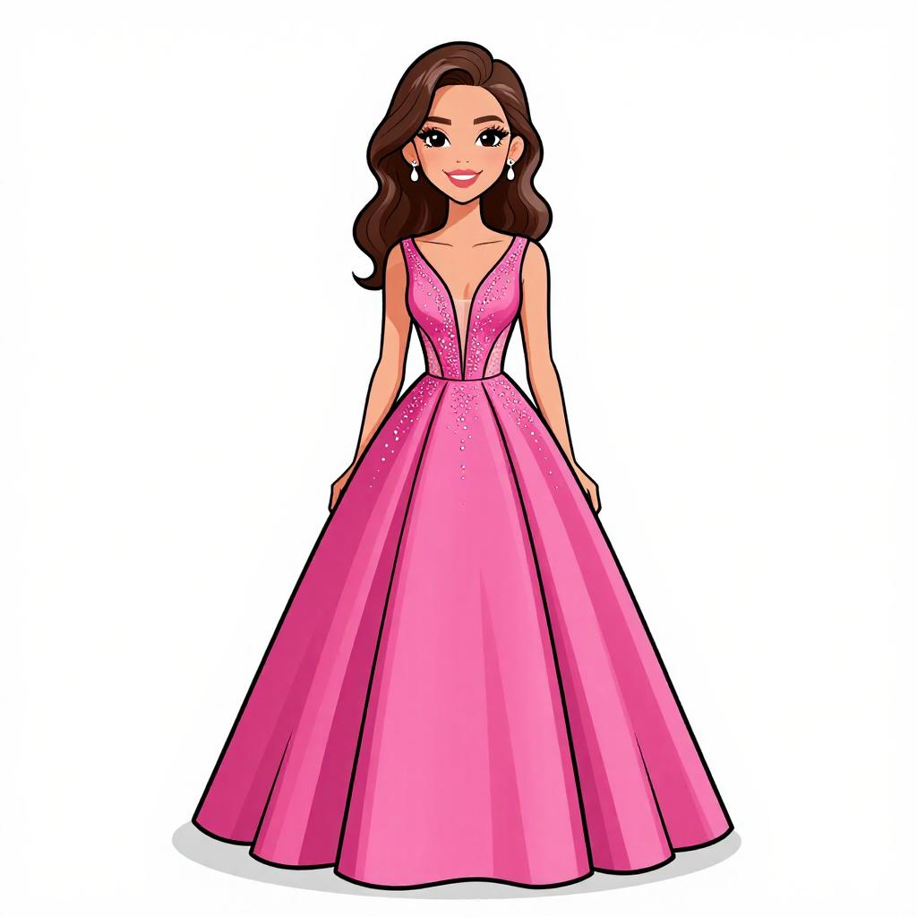 Woman with pretty face and pretty hair. smiling Woman, formal evening wear, sleeveless gown in deep purple, beaded bodice with intricate pattern, scoop neckline, fitted waist, flowing chiffon skirt, floor-length, simple silver bracelet, plain background. --sref 1467