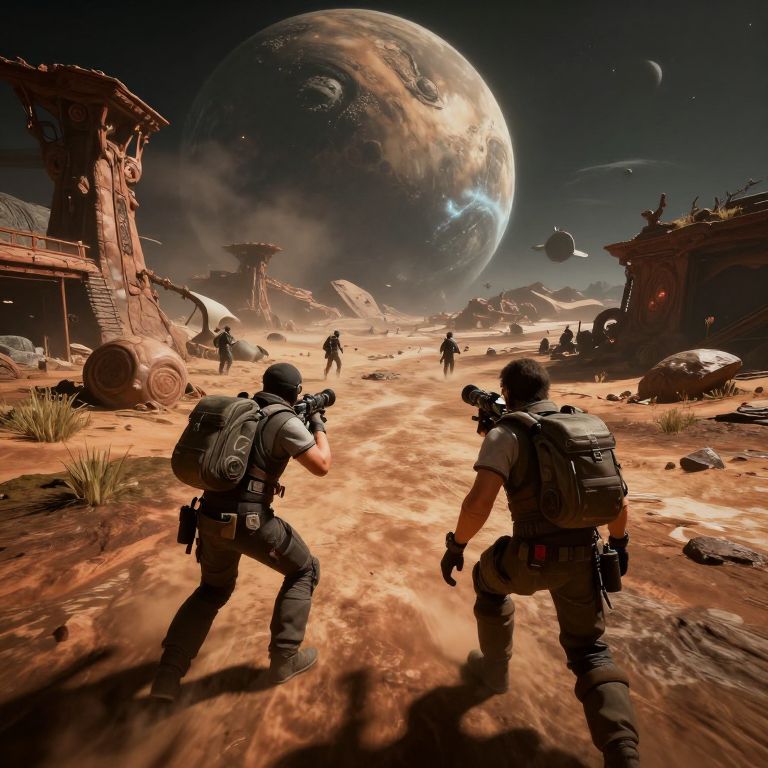 Photographer gameplay screenshot from action exploration video game set on an alien planet, unreal engine 5,