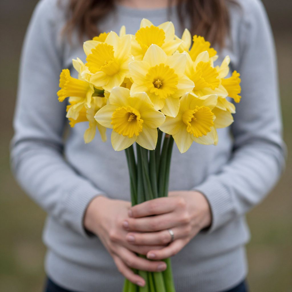Woman Holding Yellow Daffodils Bouquet