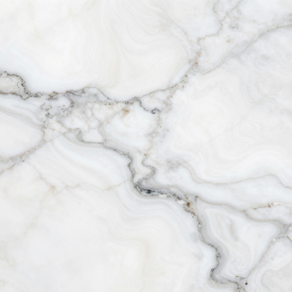 Abstract white marble texture showing swirling gray veins over soft white stone, high detail natural pattern with reflective polished surface, sophisticated and clean aesthetic, suitable for fine art backgrounds or premium product packaging visuals.