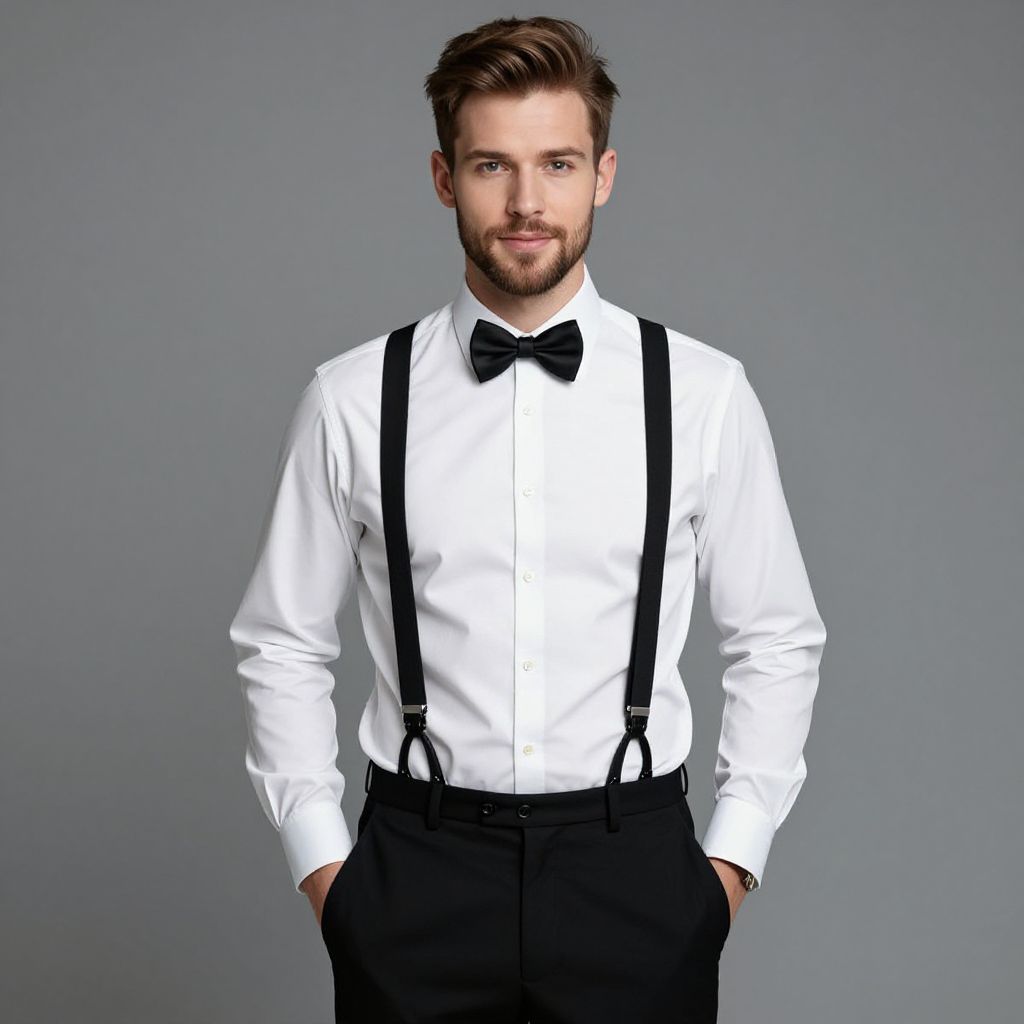 Photograph of a handsome, young white man with short, dark brown hair and light stubble. He's wearing a white dress shirt under a black robe with gold embroidered patterns on the edges. His expression is neutral, and he's looking directly at the camera. The background is a plain, light gray, putting focus on his face and attire.