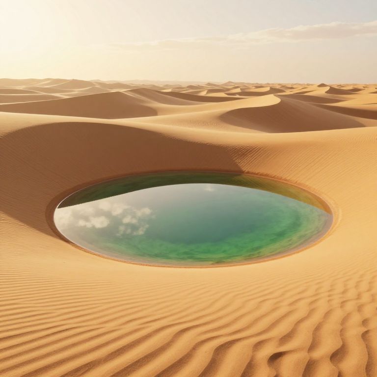 Serenity washes over the soul as liquid dunes cradle a mirror-like lake, reflecting the moonlit sky and whispering the quiet promise of infinite possibility.