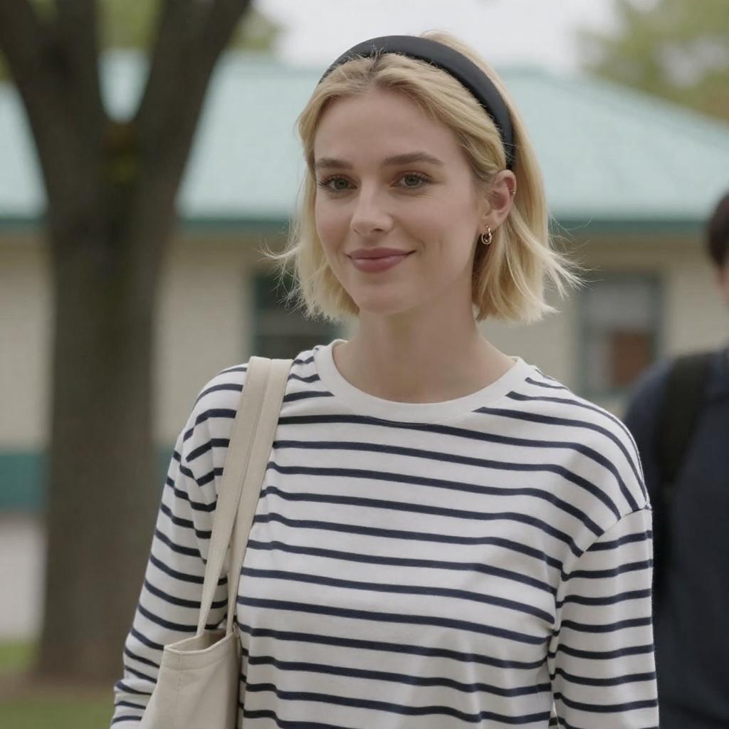 Blonde Woman Enjoying Snack in Urban Scene