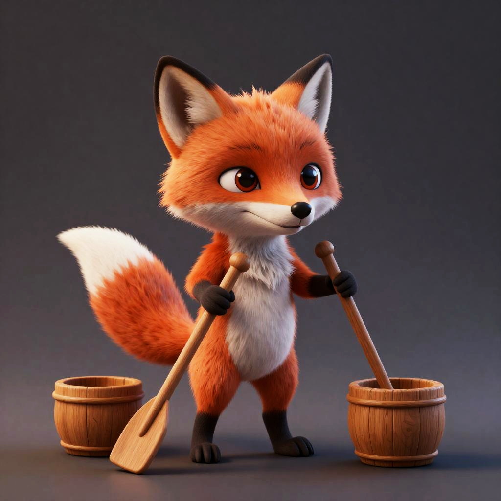 ((best quality)), ((masterpiece)), (detailed), Fox, wooden pots, Oars, tater, ((3D model, Zbrush, complex 3D rendering super detailed)), full body, chibi, vibrant, ultra realistic, cute, small, digital painting, digital art, art station, concept art, (colour contra BREAK 1.1), finest masterpiece, 8K, HDR, optical depth of field, wide light. High Contrast, Chromatic Aberration, Sharp Focus, finest masterpiece, 8K resolution, HDR lighting, shallow depth of field, wide soft light, high contrast, chromatic aberration, sharp focus, ultra detailed, photorealistic
