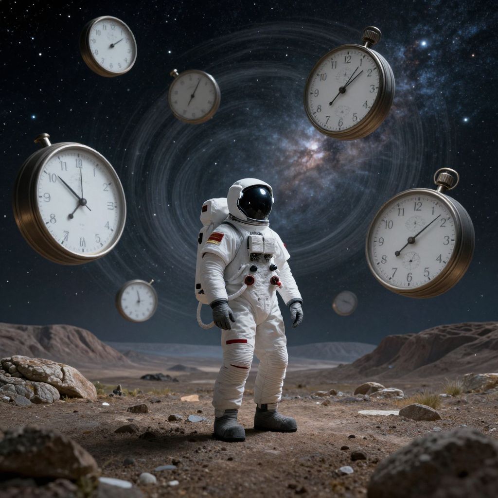 Astronaut Reflecting Amidst Warped Time