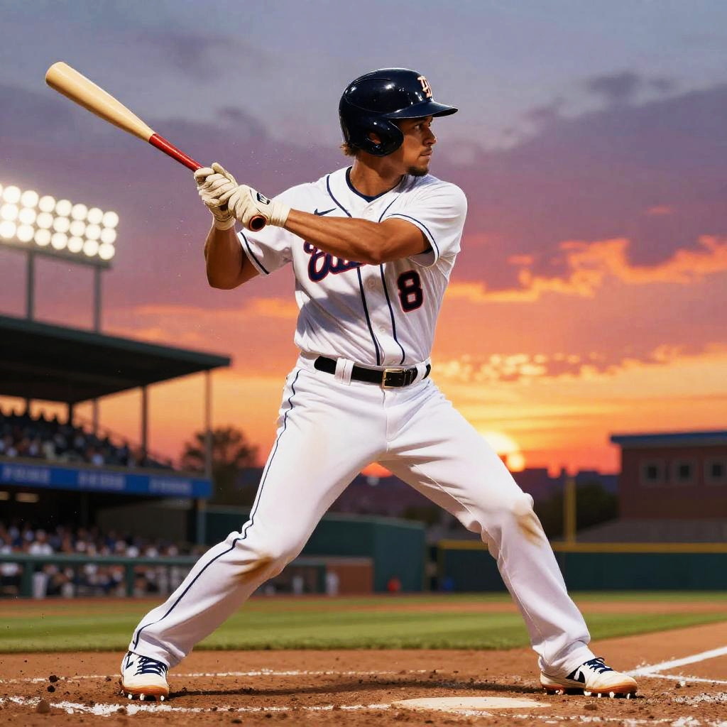 Nolan Ryan shoes crafted to capture the essence of fast pitching, aerodynamic design elements, sleek metallic accents with subtle baseball stitching patterns, set in an action shot on a pitcher's mound during a vivid sunset game.