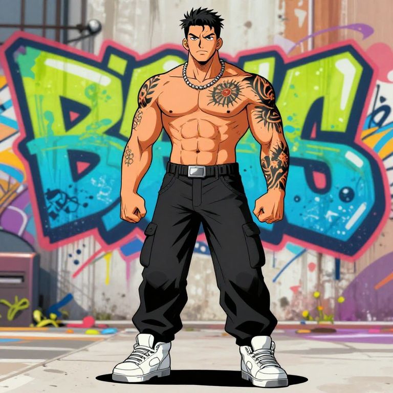 Muscular Blonde Anime Warrior with Tattoos