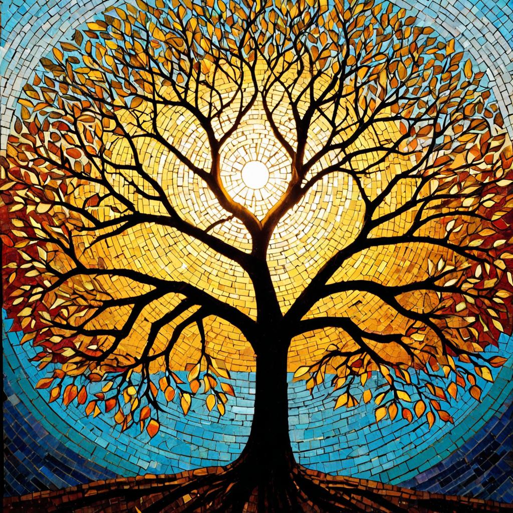 Mosaic Tree of Life with Radiant Sun