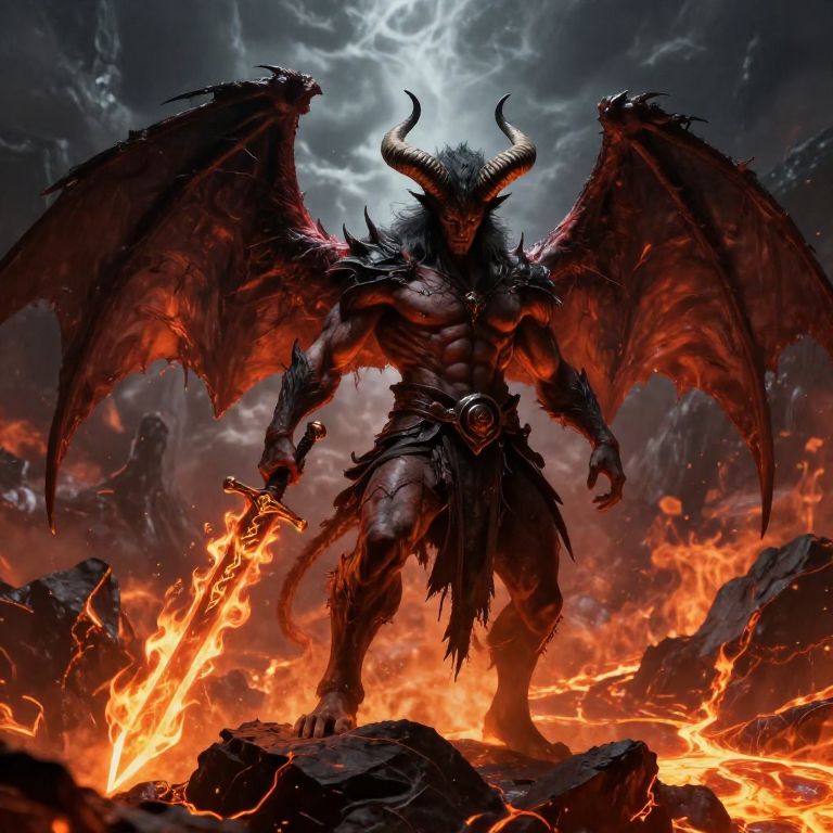 Muscular Demon Wielding Flaming Sword