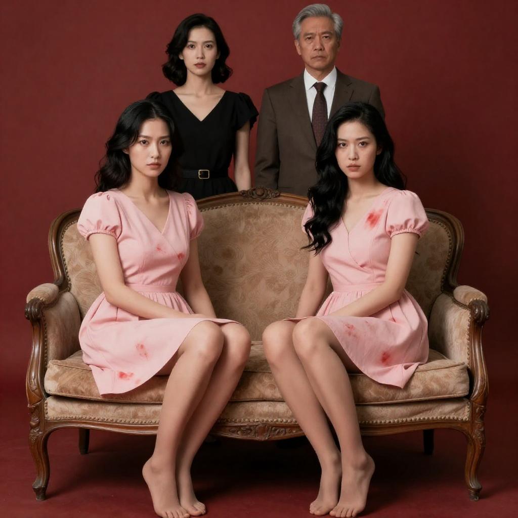 Photograph of two women in colorful, feathered and sequined dresses, standing side by side in a brightly lit room. Both women have dark hair in updos, serious expressions. Background includes other people, blurred, and ornate windows.