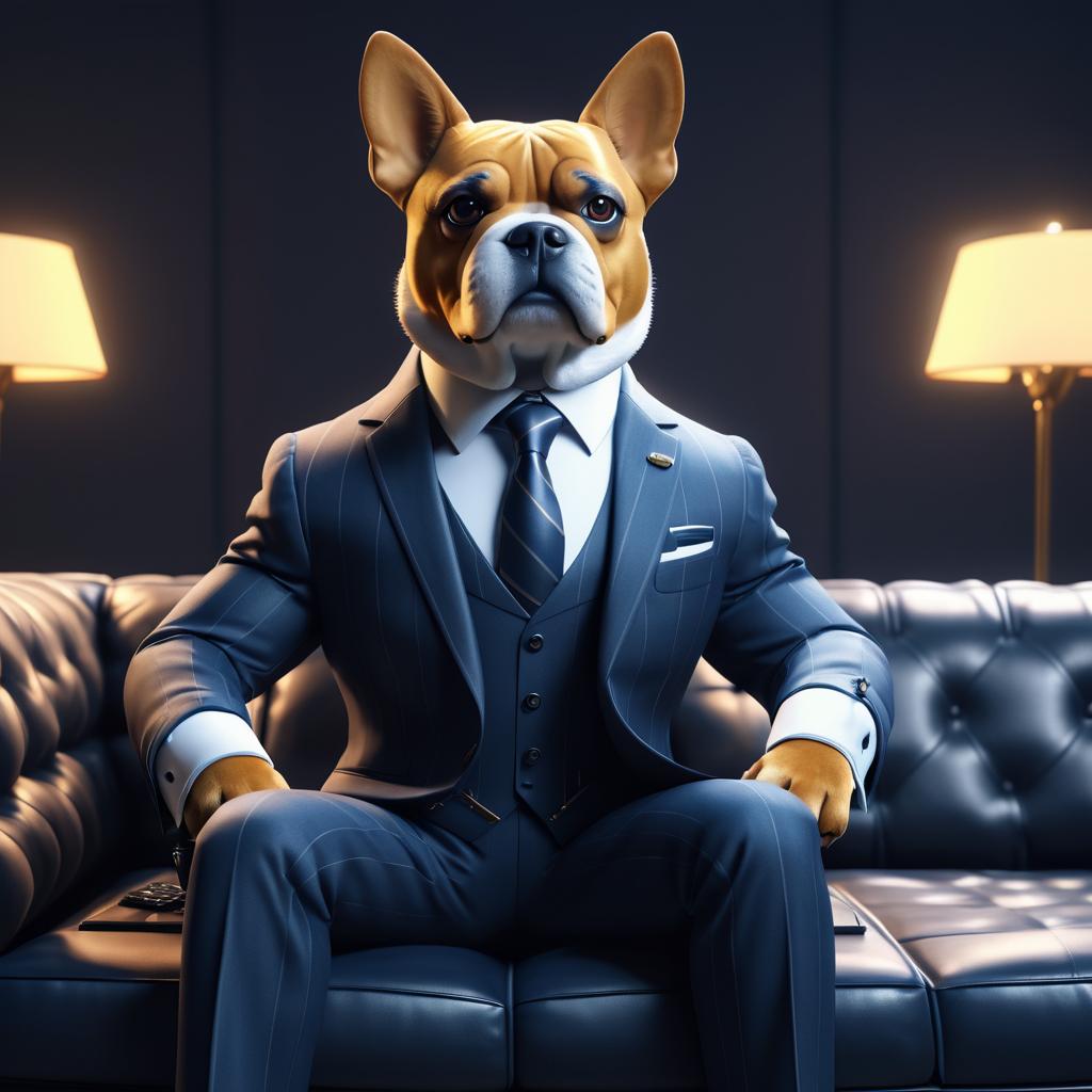 Anthropomorphic Dog in Business Suit on Leather Couch