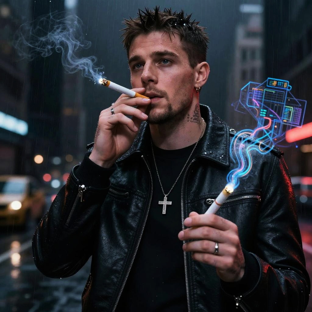 Cyberpunk Andrew Tate Smoking Scene