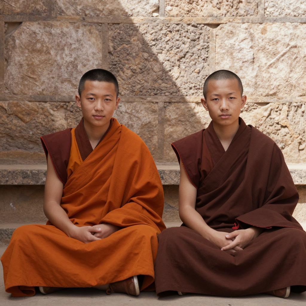 Monks by the Serene Mountain Lake