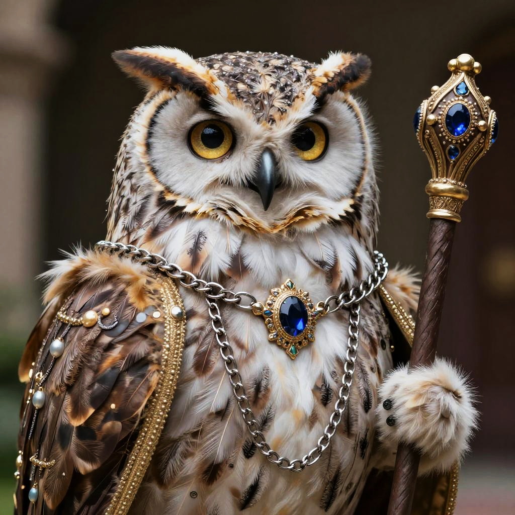 Anthropomorphic a red panda depicted as a president, wearing ceremonial golden breastplate, with a spear held upright and a determined gaze.