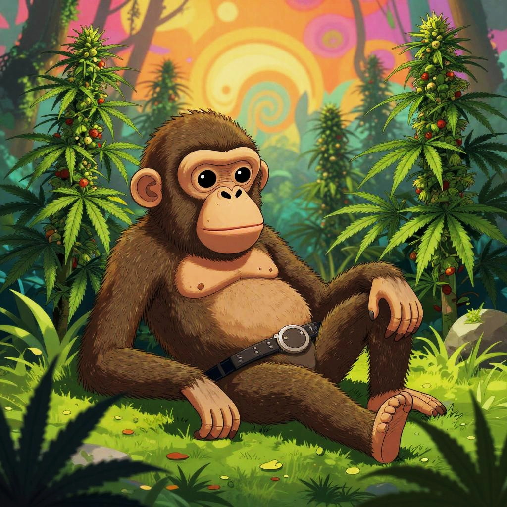 Lazy Ape in Psychedelic Cannabis Jungle