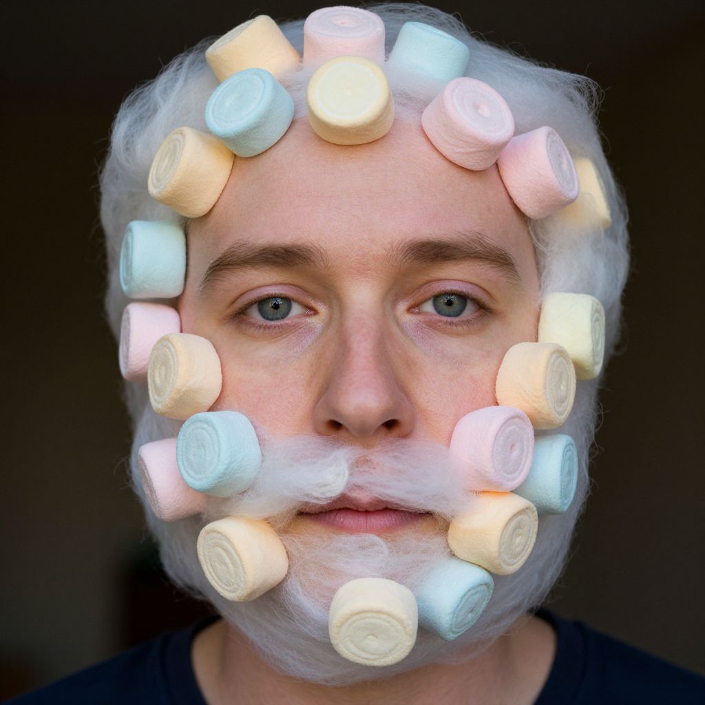 Jesse pinkman, his face pigments made out of patterned cotton candy, every single face pigments made of cotton candy, cotton candy used for face, beautiful composition,