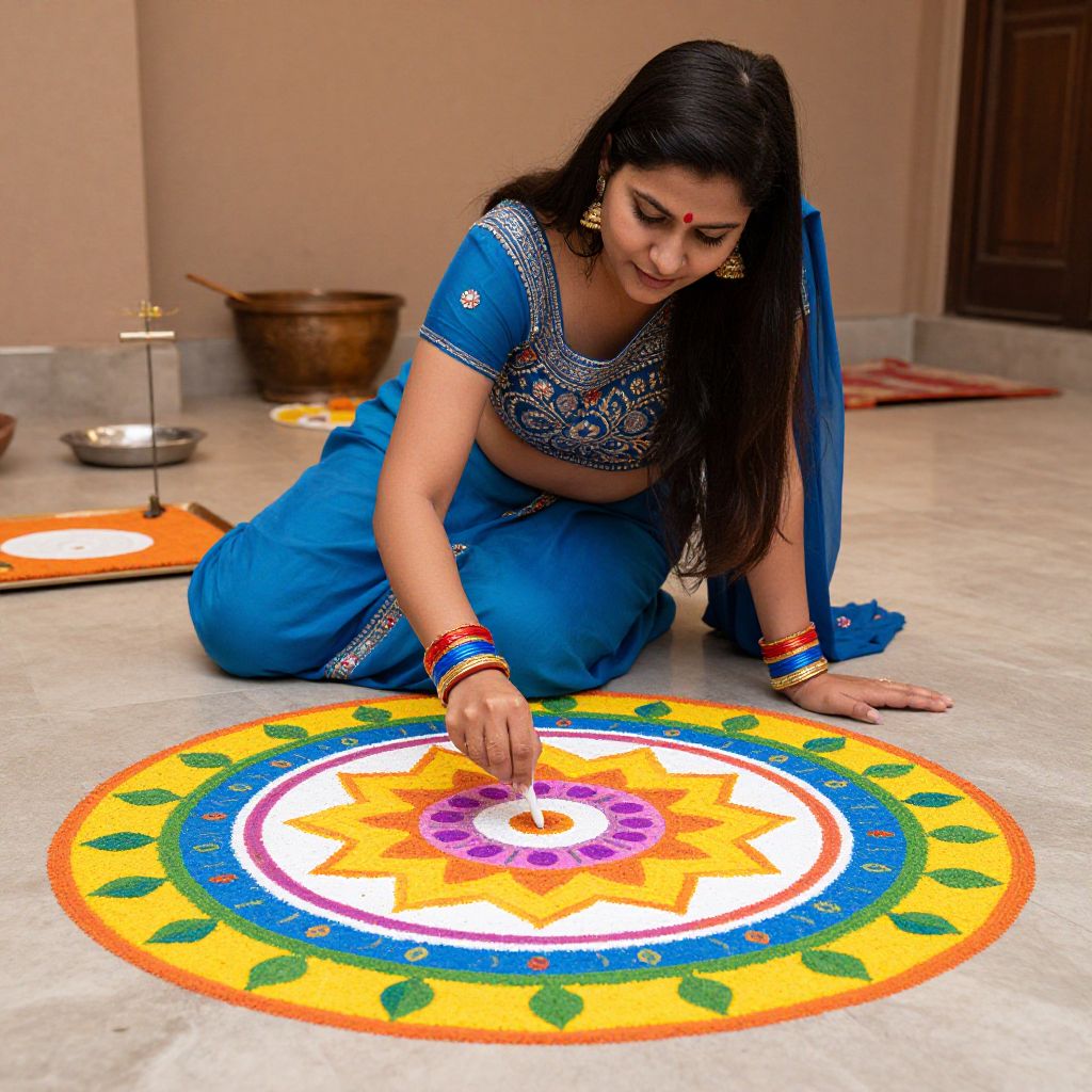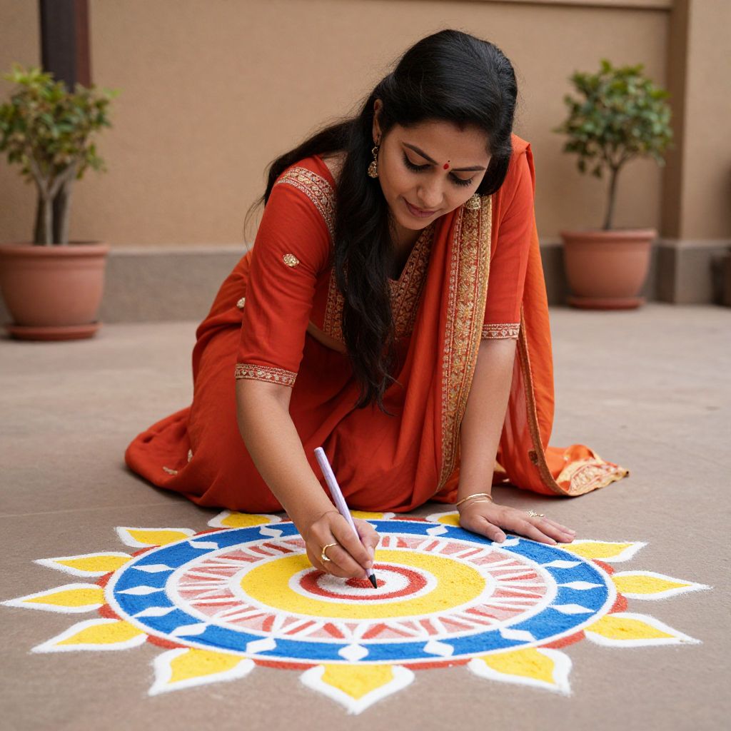Woman Crafting Traditional Telangana Rangoli