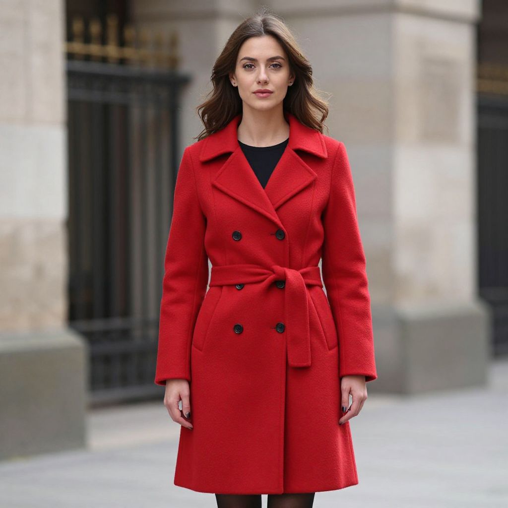 "Woman Prince Coat, woman in a red coat posing for a picture"