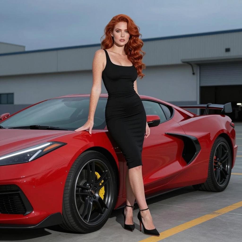 Glamorous Black Woman by Yellow Sports Car