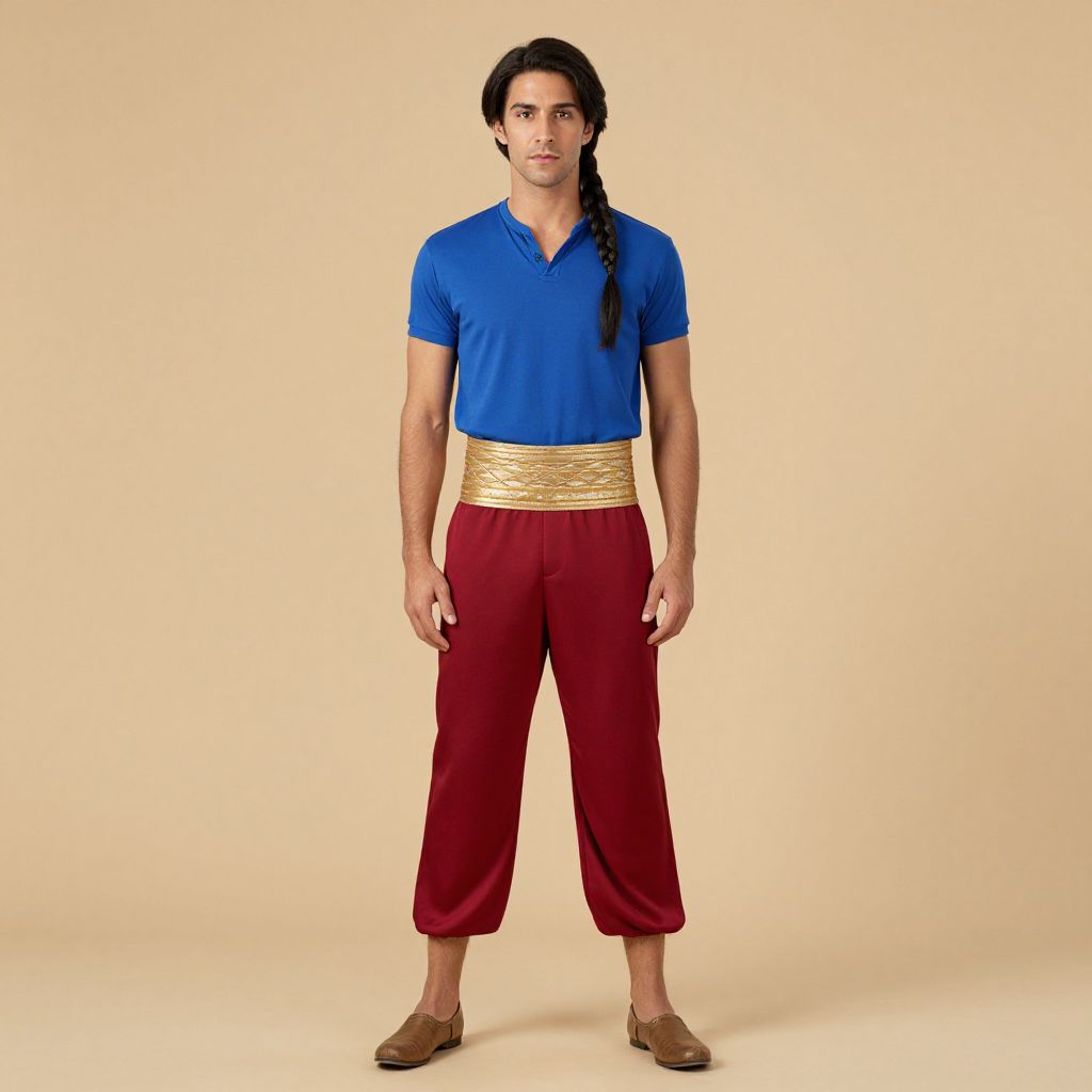 "nasa costume male, 1boy, solo, male focus, facial hair, beard, standing, full body, pants, arms at sides, long sleeves, robe, mustache, red pants, brown footwear Realistic photo of casual sexy person with pretty face"