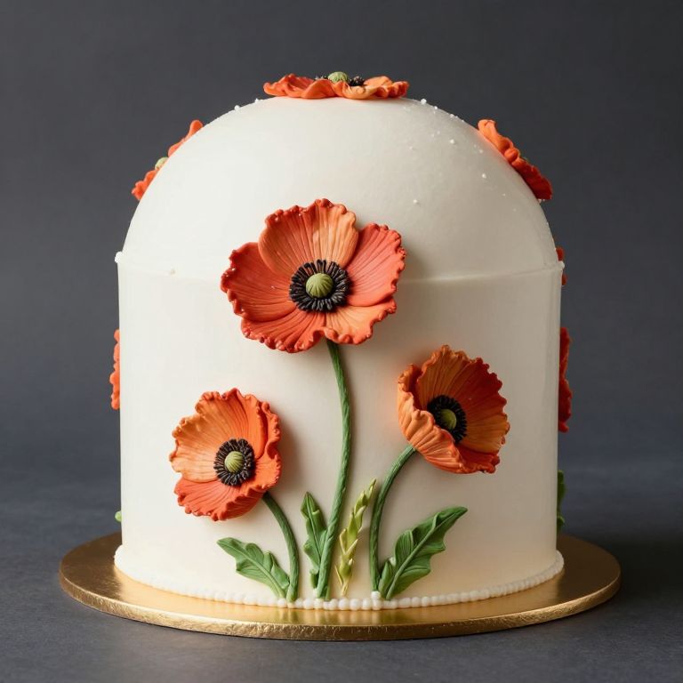 Oriental Poppy Floral Lg Cake Dome - Golden Hill Studio