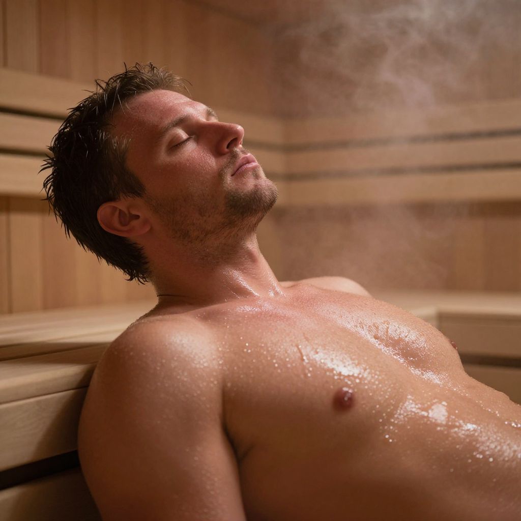 Oily Man Relaxing in Steamy Sauna