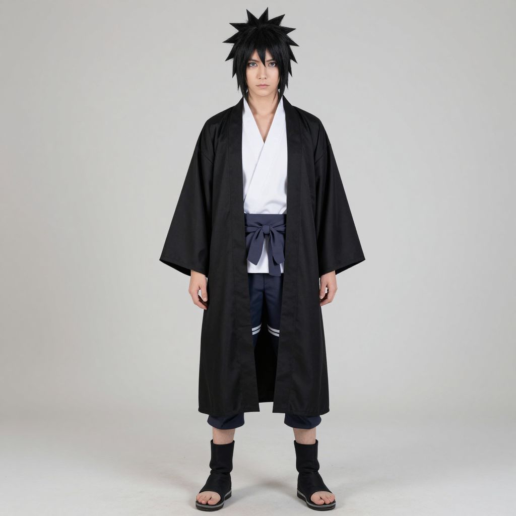 Sasuke Last Costume, image of a man in a black robe and a white shirt