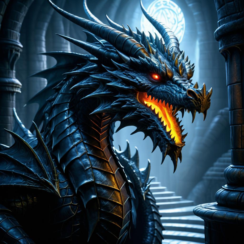 Dark Nightmarish Serpent with Glowing Amber Eyes
