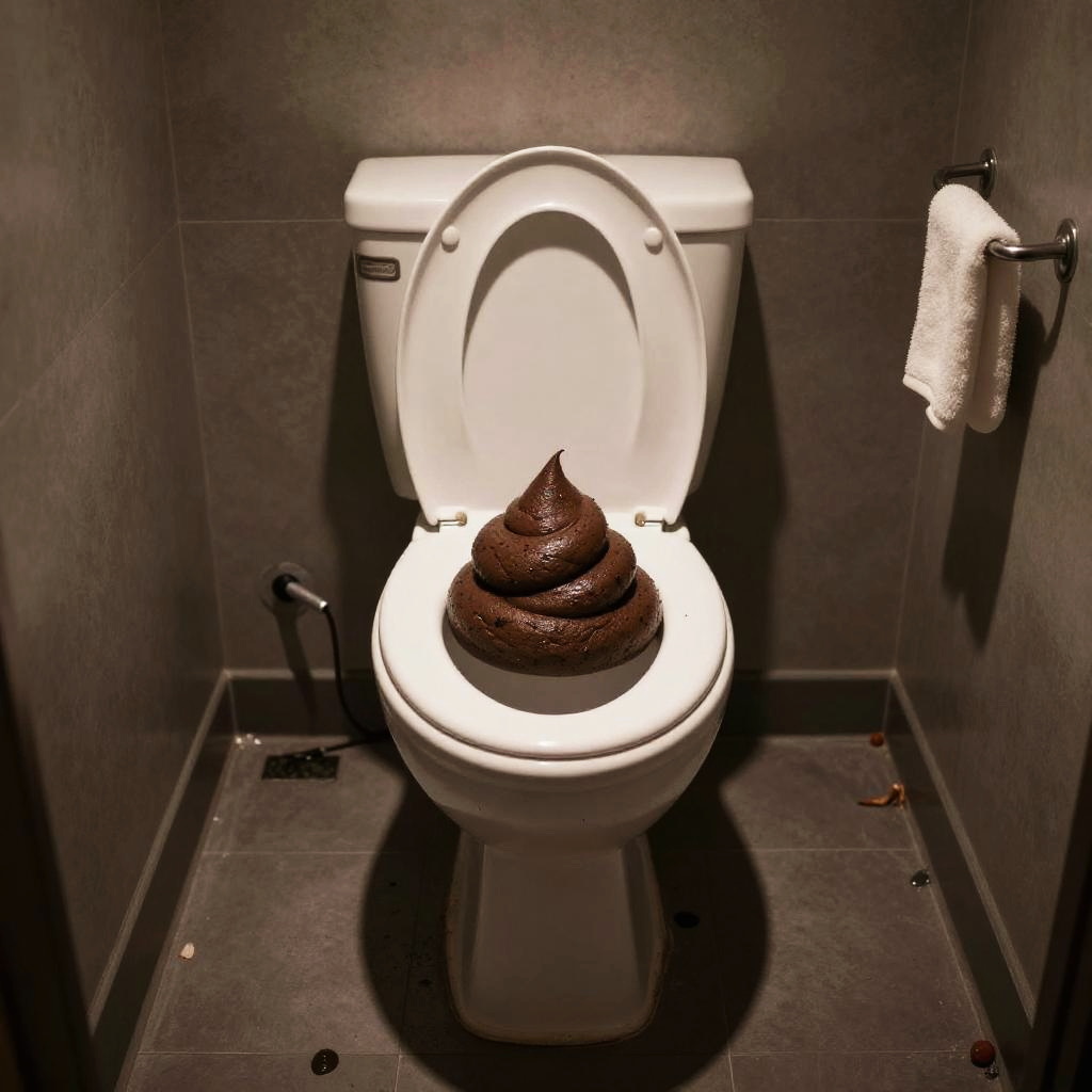 Biggest poop in toilet, exaggerated cartoon style, bright colors, bathroom setting, whimsical humor, overflowing toilet bowl, playful and surreal atmosphere