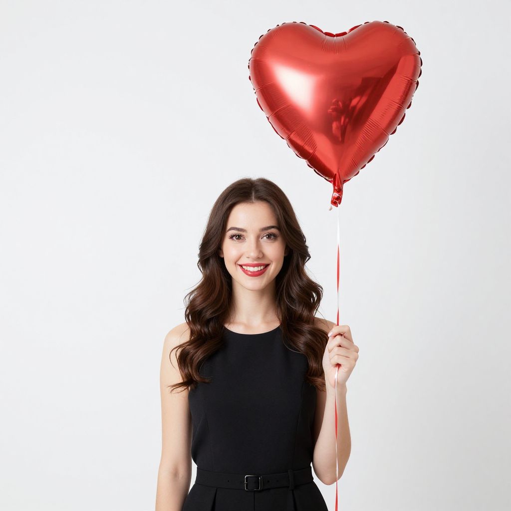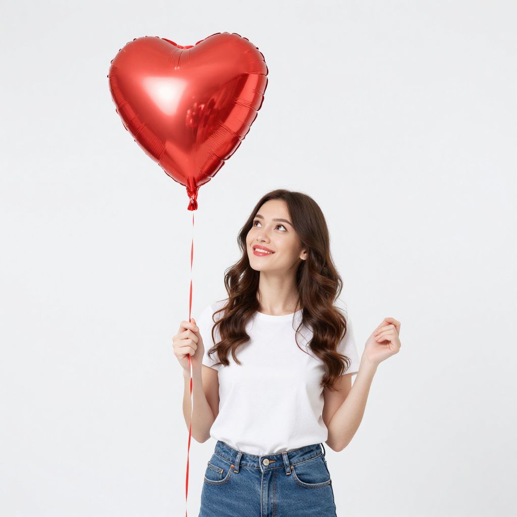 Woman with red heart balloon on a white background — Stock Photo #17859447