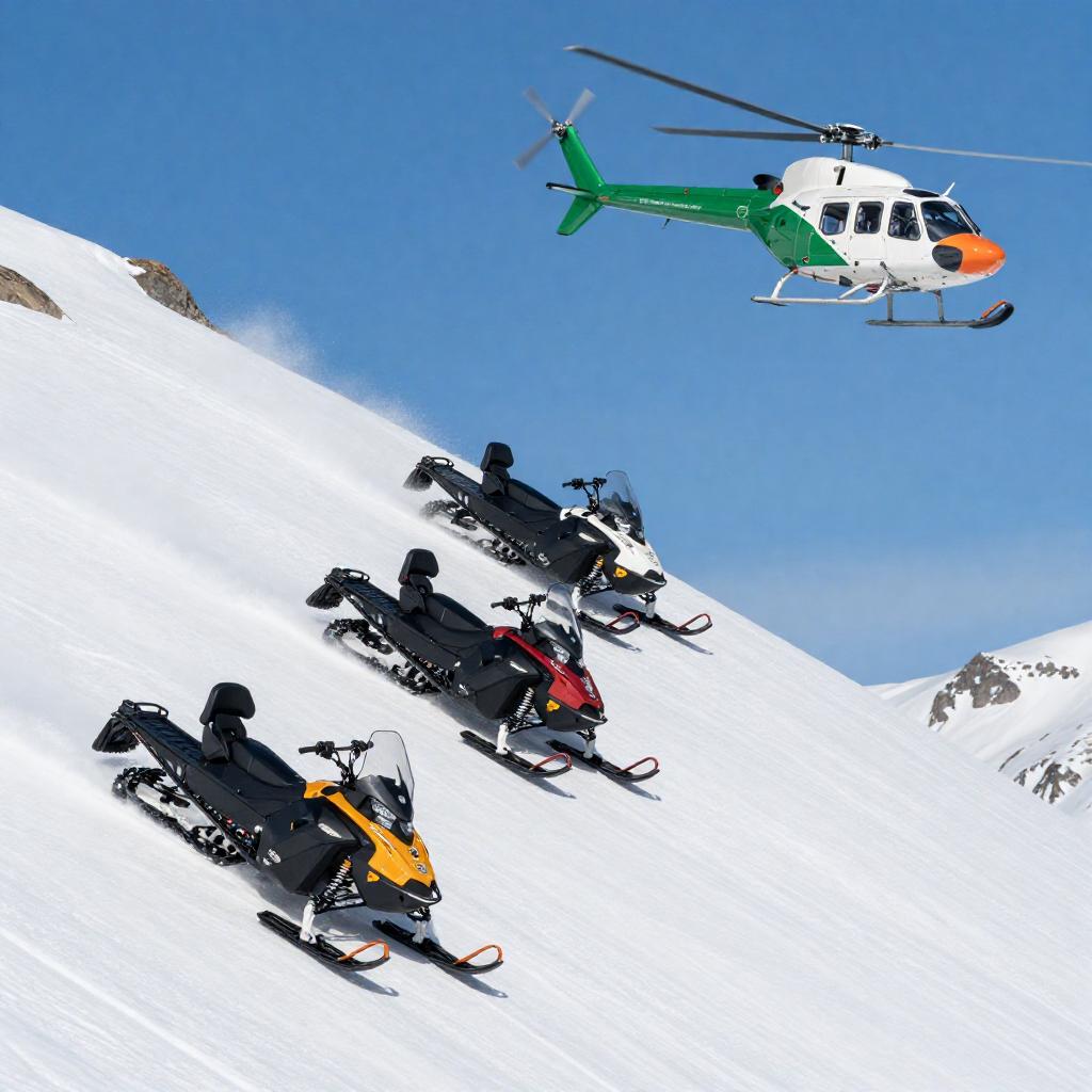 A digital rendering of a yellow helicopter with blue lights and a spotlight, flying over a dark forest with mountains in the background. The helicopter is illuminated against a starry night sky, with its spotlight beam cutting through the trees below.