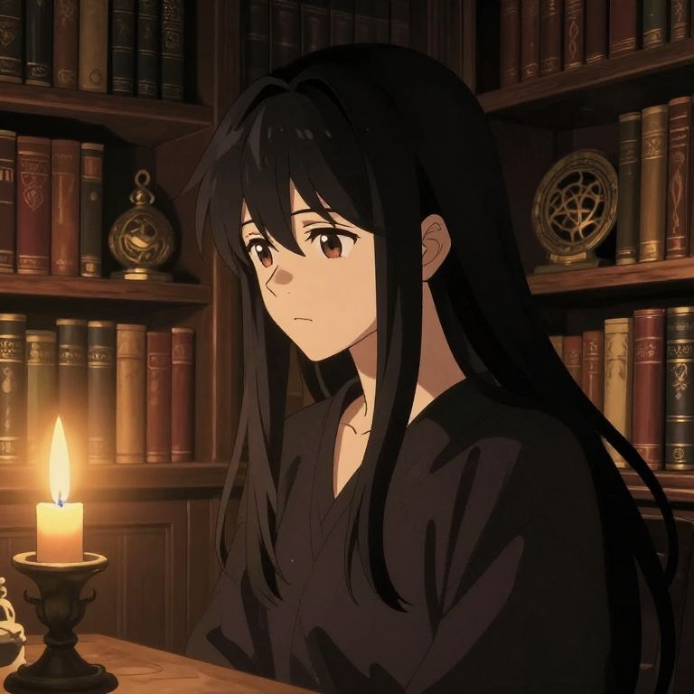 Mature Anime Girl in Sunlit Library
