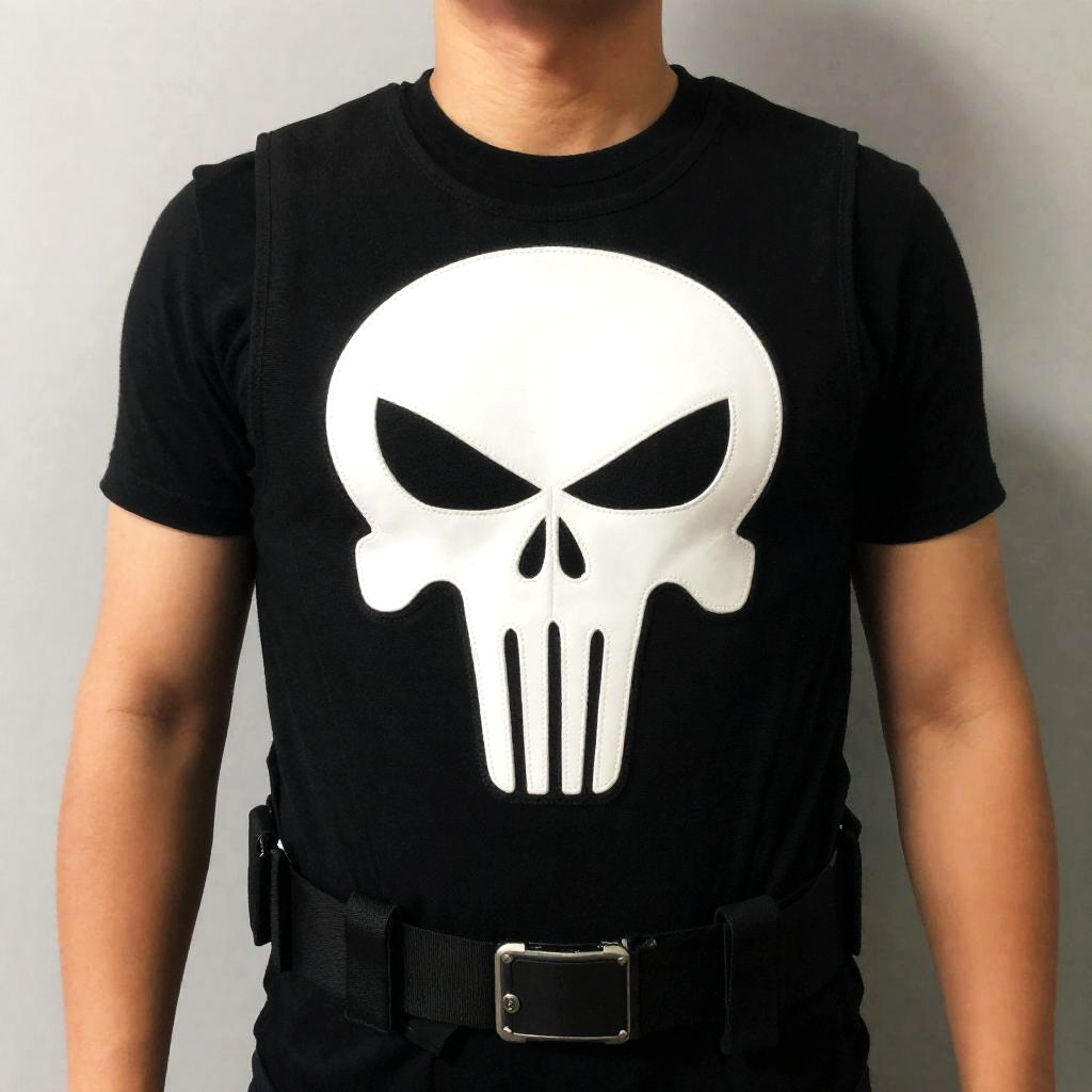 Man Wearing Punisher Skull Vest