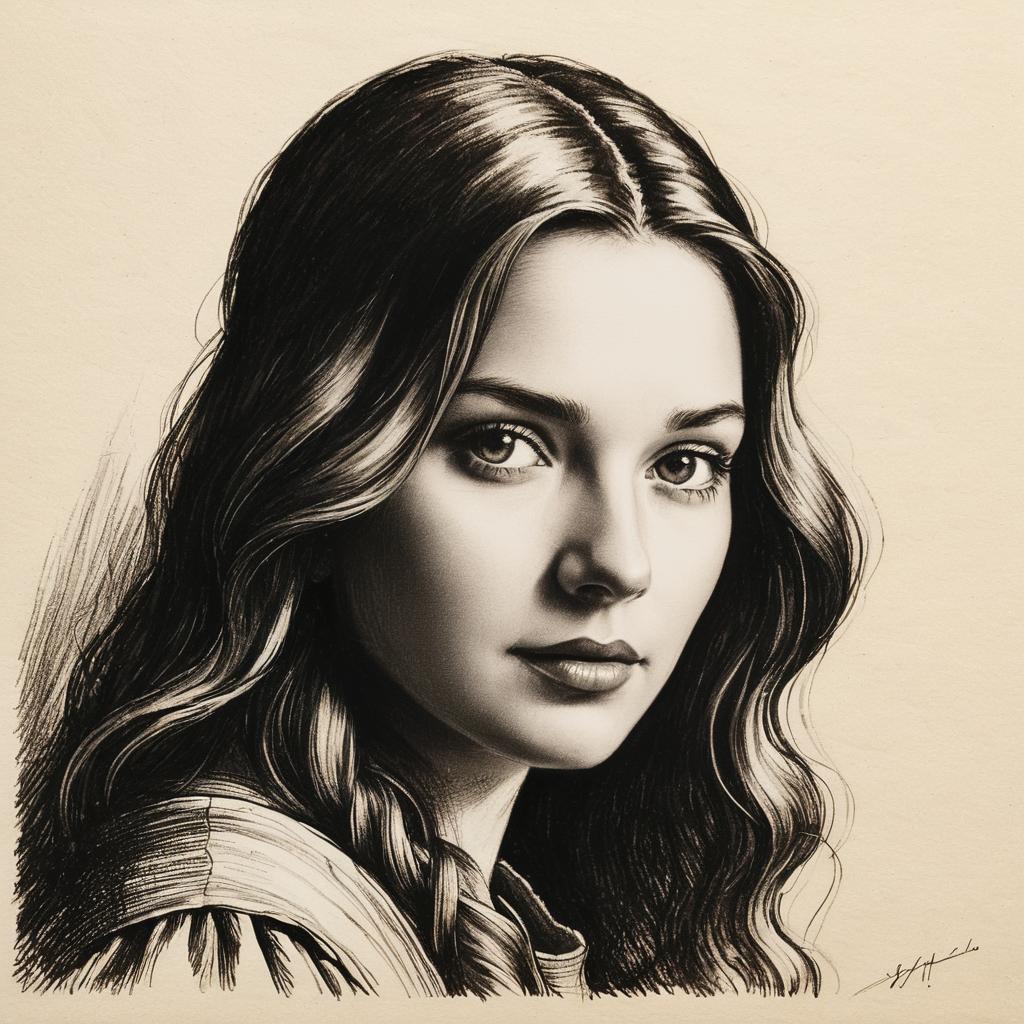 A woman's face in minimalist style illustration, in the style of modern fashion photography, monochrome black and white, by Helmut Newton, charming character illustrations, large format film, painted illustrations