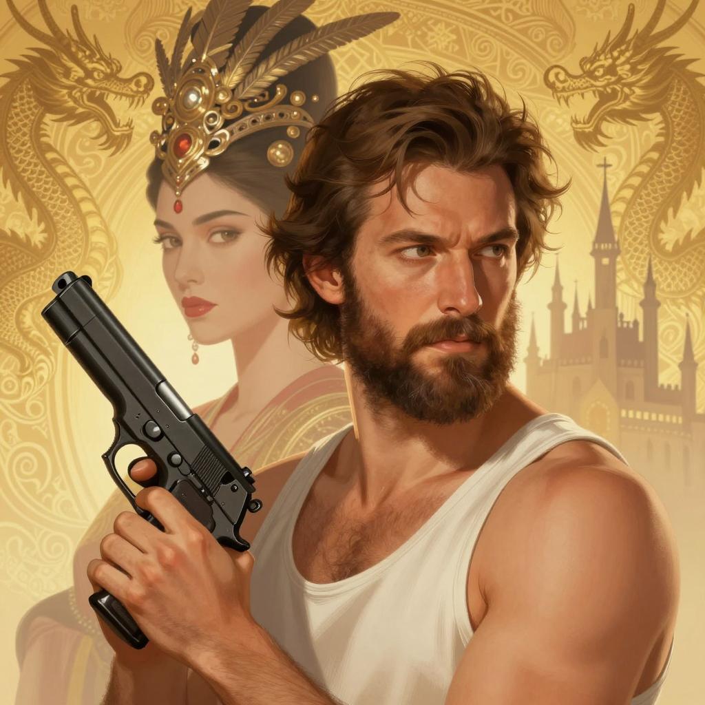 Intense Muscular Man with Double-Barreled Gun