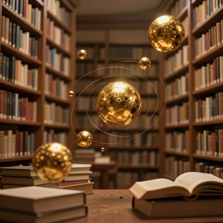 In a hushed library where knowledge transcends the confines of paper, golden spheres of ink float serenely, their silent orbits weaving a tapestry of infinite curiosity and wonder, inviting minds to reach out and embrace the boundless expanse of thought.