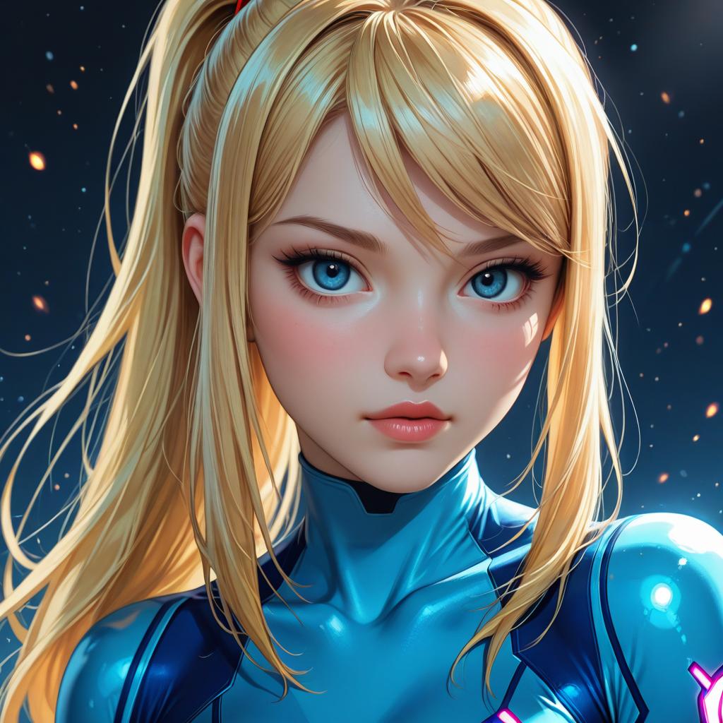 An anime-style illustration of a girl with styled blonde hair and a purple outfit lying on the floor facing a friendly white dog. They are inside a dimly lit room with a TV in the background showing an intense character with similar hair styling. The scene features vibrant colors and detailed anime art, conveying a cozy indoor atmosphere.