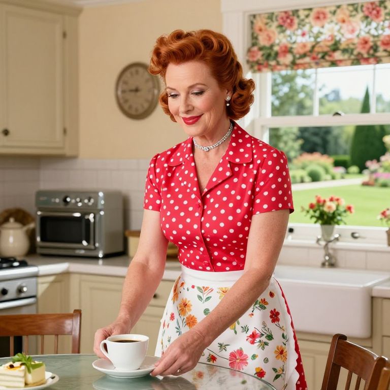 1950s Polished Housewife in Cozy Kitchen