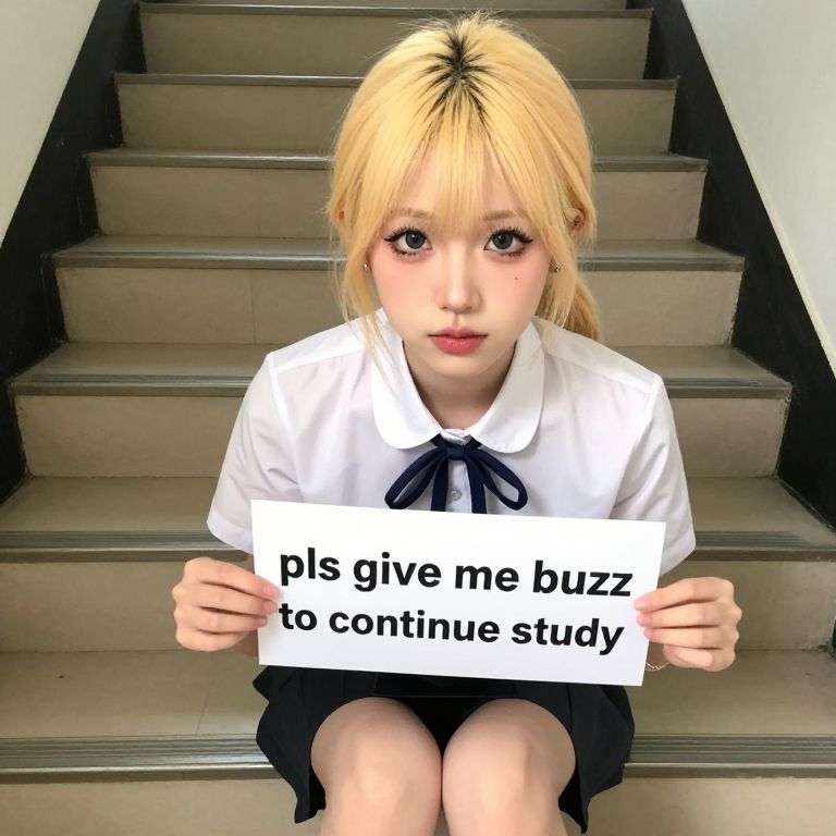 Happy Girl Holding 'Give Me Buzz' Sign