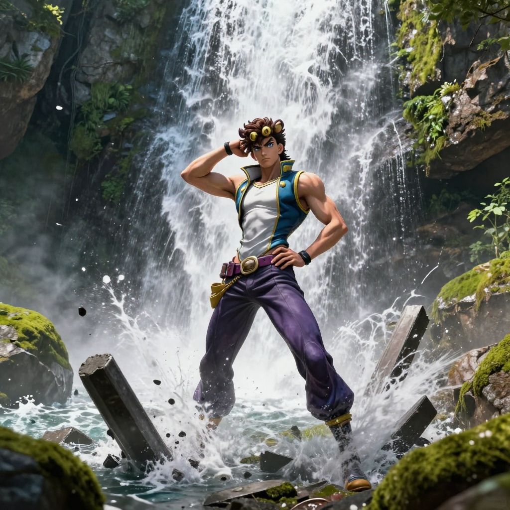 Photorealistic Waterfall and JoJo Pose Girl