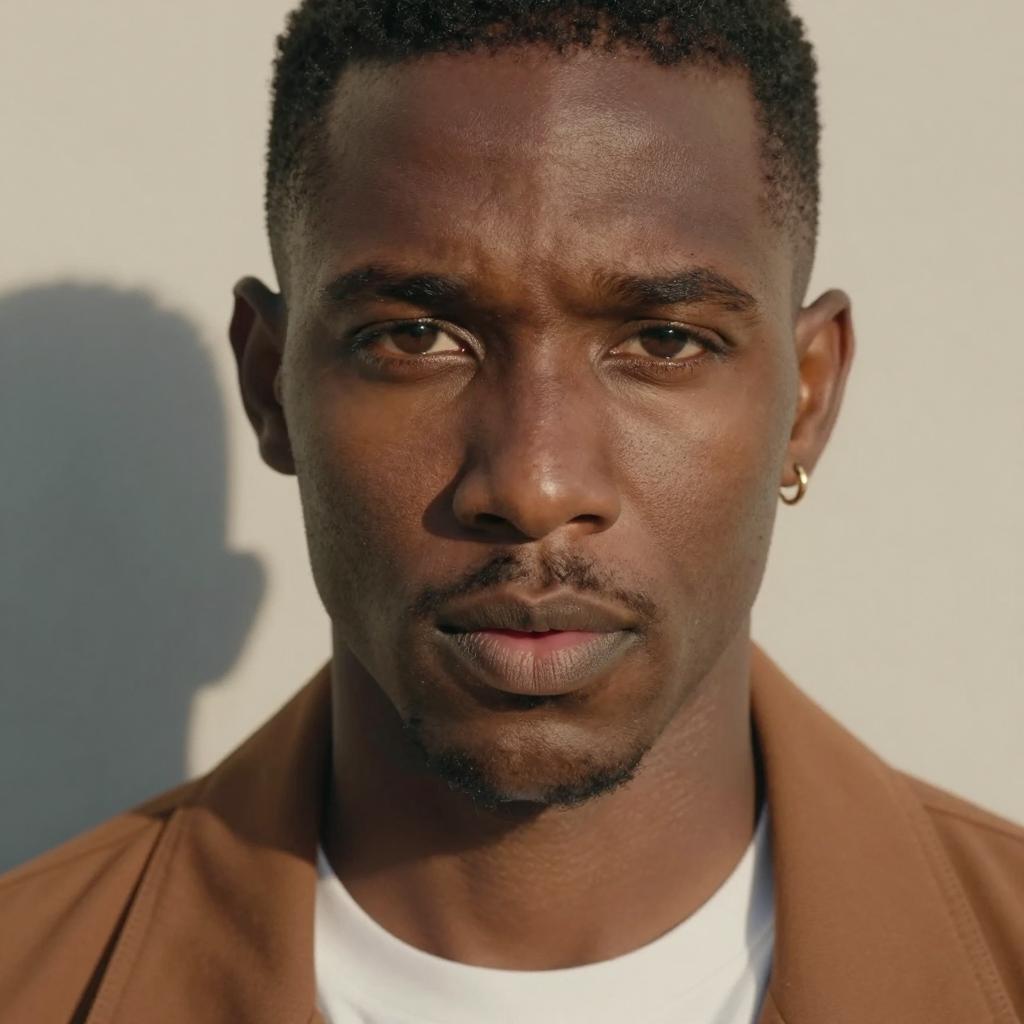 Two black men in black suits with white shirts and black ties. Both have short hair and intense expressions. The man on the right is bald, facing forward. The man on the left is slightly turned to the right, looking ahead. White background. Digital illustration style.