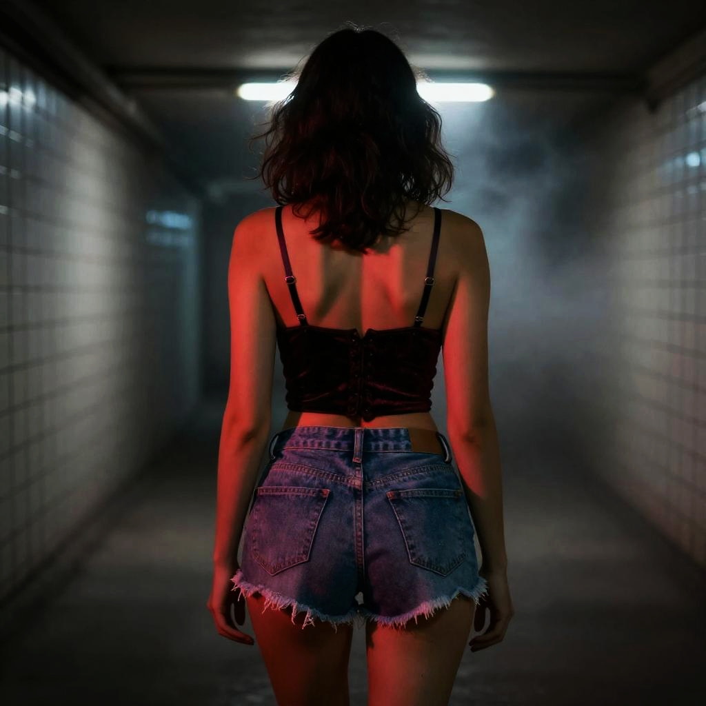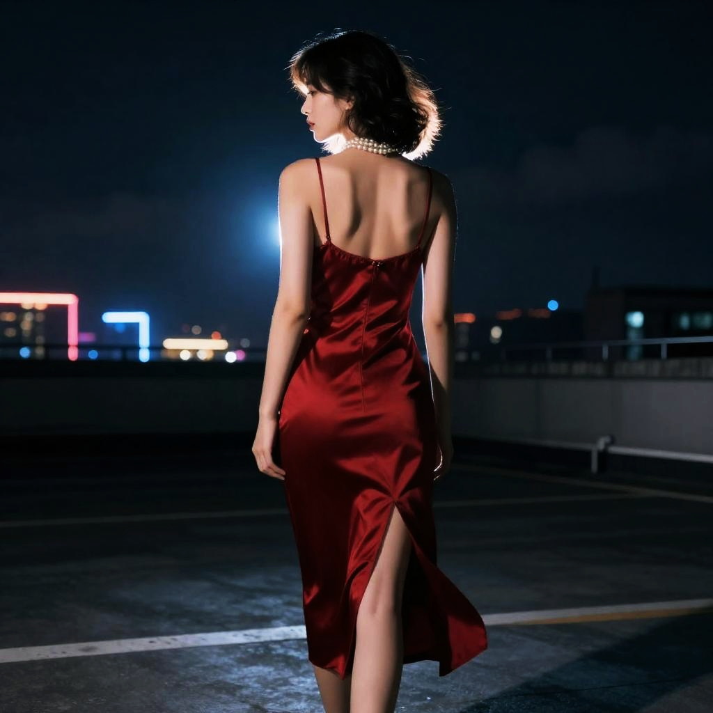 Cinematic low‑key photograph of a backlit woman, wearing a emerald satin bias-cut slip dress with a long sheer cape and strappy heels, illuminated by dramatic warm amber backlight with teal rim and soft violet underlighting against a art-deco ballroom with gilded mirrors, smoky chandeliers and polished marble floor