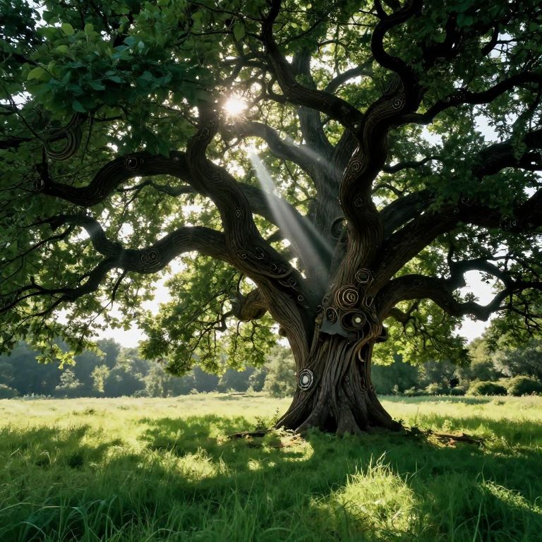 Through the hollowed heart of a tree, a portal opens to a realm where dreams and reality intertwine, inviting introspection and the quiet promise of transformation.